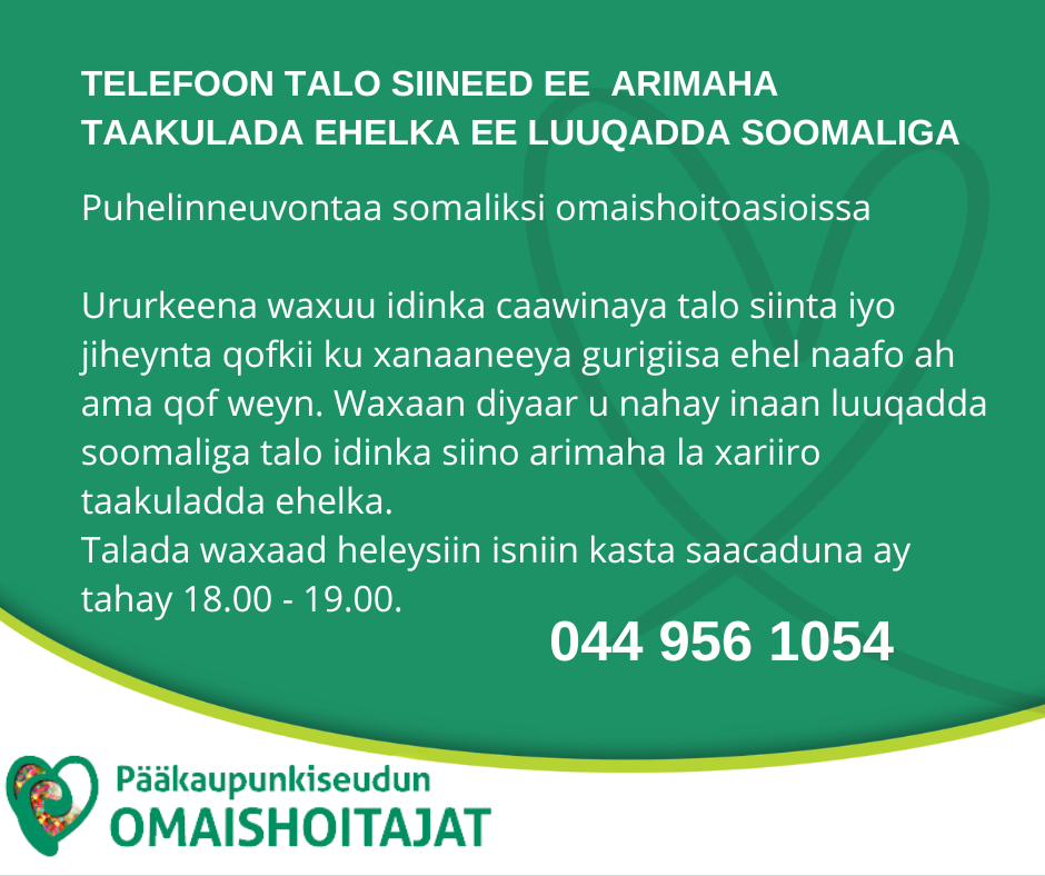 Telefoon talo siineed ee arimaha taakulada ehelka ee luuqadda soomaliga – Somalinkielinen Omaisneuvo-puhelin